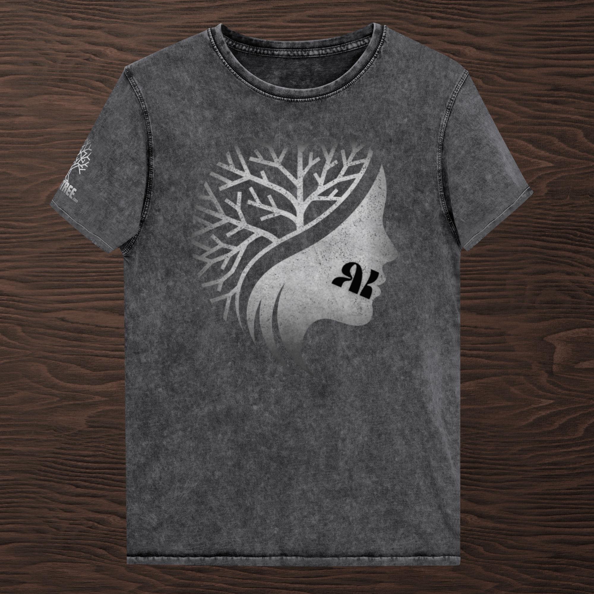 This denim t-shirt is made out of 100% combed cotton and has a classic rounded neckline with ribbed sleeve cuffs. It's soft, comfortable, and a must-have for every fashion enthusiast!